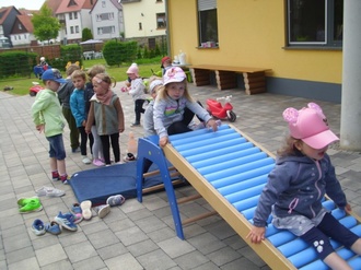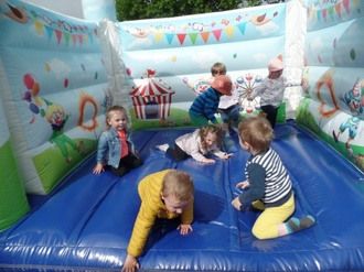 Die Hüpfburg war das Highlight des Tages. Weitere Angebote gab es mit dem Schwungtuch, der Rollenrutsche, Malen mit Wasser uvm.