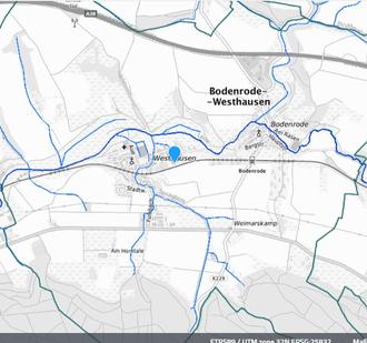 Im Bereich Bodenrode-Westhausen ist infolge starker Niederschläge mit einem starken Ansteigen des Oberflächenwassers zu rechnen.
