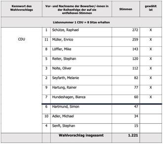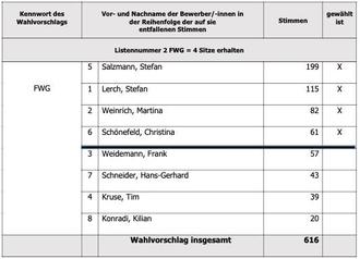 Für die Gemeinderatswahl in der Gemeinde Bodenrode-Westhausen am 26.05.2024 hat der Gemeindewahlausschuss das folgende endgültige Wahlergebnis festgestellt: