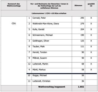 Für die Gemeinderatswahl in der Gemeinde Wingerode am 26.05.2024 hat der Gemeindewahlausschuss das folgende endgültige Wahlergebnis festgestellt: