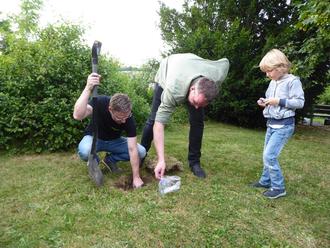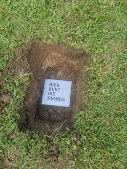 „Begraben“ wurde die diesjährige Kirmes durch die beiden Platzmeister und die Jungbuschen am Dienstag auf dem Heidelberg. Hier ruht sie, bis sie im nächsten Jahr wieder „ausgegraben“ wird.