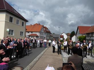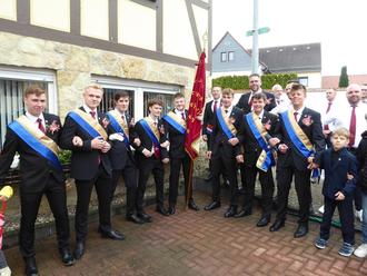 Ständchen bringen an der Schmiede v.l.n.r.: Kirmesburschen Samuel Hildebrandt, Julian Pingel, Anton Vieth, Salomon Hildebrandt, Luca Dornieden, Luis Deppe, Luca Lutze und Dominik Mainka