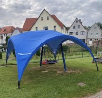 - Ein tolles „Zelt“ als Schattenspender über unserer Nestschaukel. -