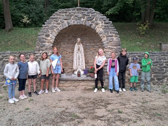 Nachdem der Vormittag mit Erzählungen über die heilige Maria begann, machten sich die Kinder und ihre Betreuerinnen Bernadette Künzel, Ramona Jünemann und Susann Ständer auf den Weg zur Mariengrotte an der Hauptstraße.