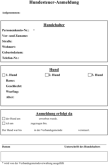 Die Hundehalter, welche ihrer Anzeigepflicht bisher noch nicht nachgekommen sind, bitten wir bis zum 04. April 2024 ihre Hundesteuer-Anmeldung vorzunehmen. Verwenden Sie hierzu das abgedruckte Anmeldeformular.