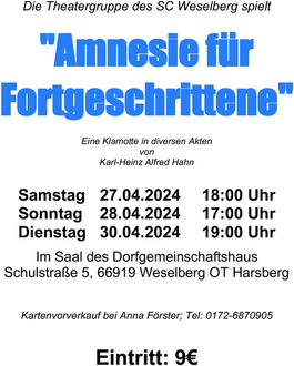 "Amnesie für Fortgeschrittene" - die Theatergruppe des SC Weselberg spielt