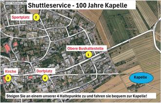 Da die Flächen um unsere Kapelle begrenzt sind, bietet unsere Freiwillige Feuerwehr für alle einen Shuttle – Service an, bei dem Sie an 4 Punkten in der Gemeinde abholt werden bzw. im Anschluss an Ihren Besuch wieder gebracht werden. Natürlich können Sie uns auch gerne zu Fuß erreichen.