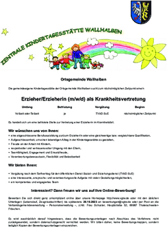Die gemeindeeigene Kindertagesstätte der Ortsgemeinde Wallhalben sucht zum nächstmöglichen Zeitpunkt eine/n