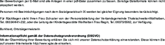Bei Bewerbungen per E-Mail sind alle Anlagen in einer pdf-Datei zusammen zu fassen. Sonstige Dateiformate können nicht akzeptiert werden.