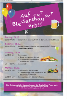 ab 19:00 Uhr Gemütlicher Kerweauftakt im Dorfgemeinschaftshaus