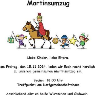 laden wir Euch recht herzlich zu unserem gemeinsamen Martinsumzug ein.