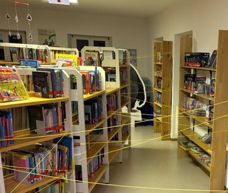 Im Anschluss durfte die „Halloween-Bande“ die „Bunten Spinnweben“ zwischen den Regalen der Bücherei entfernen und die dabei gefundenen Puzzlestücke zusammensetzen.