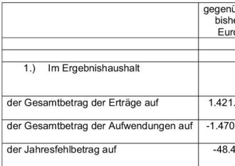 Die übrigen Bestimmungen der Haushaltssatzung bleiben unverändert.