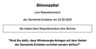 „Sind Sie dafür, dass Windenergie-Anlagen auf dem Gebiet der Gemeinde Emleben errichtet werden dürfen?“