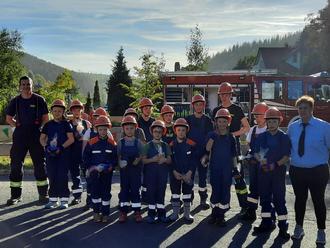 Durch die Jugenwartin Monique Anschütz und dem Betreuer Sascha Lauenstein wurde den Kids der Jugendfeuerwehr ein Geschenk überreicht.