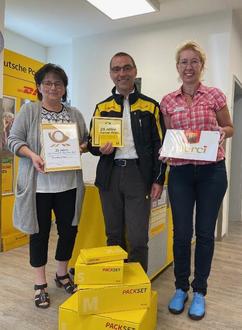 Vertriebsmanager René Heilwagen überreichte uns dazu eine Urkunde für 25 Jahre Postagentur in Masserberg.