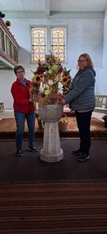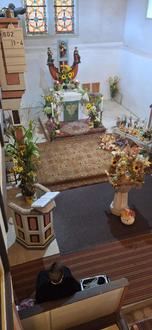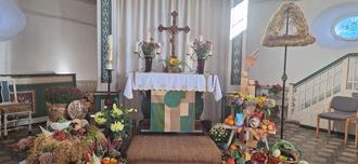 Obwohl die Landwirtschaft im Wald nicht so ausgeprägt ist, waren die Kirchen mit Erntegaben und Blumen geschmückt. Erwähnenswert ist die wunderschöne Blumenkrone, mit der in der Heubacher Kirche der Taufstein dekoriert wurde.