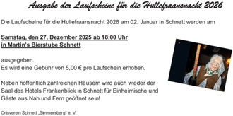 Am 02.01.2026 findet wieder die traditionelle Hullefraansnacht in Schnett statt.