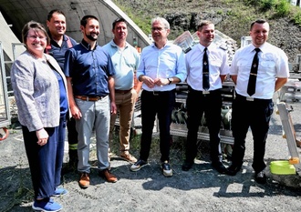 Der Minister besuchte den begehbaren Teil des Tunnels in Masserberg und ließ sich die baulichen Anlagen sowie die Struktur der ICE-Strecke erklären. Am Ende präsentierten die Wehren verschieden Fahrzeuge und Materialien und Herr Minister Maier konnte sich mit dicker Feuerwehrjacke, Helm, notwendig persönlicher Ausrüstung einschließlich zweier Atemluftflaschen als echter Feuerwehrmann fühlen.