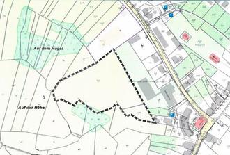 Lageplan mit Geltungsbereich (schwarz gestrichelt) des vorhabensbezogenen Bebauungsplan „Auf dem Hügel 2" der Gemeinde Masserberg (Kartengrundlage „Geoportal Thüringen (c); ohne Maßstab)