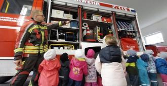 Kürzlich konnten die Glückskäfer des AWO KiGa in Mengersgereuth-Hämmern etwas ganz Besonderes erleben. Die Kinder durften sich die Feuerwehr in Mengersgereuth-Hämmern anschauen und einen Vormittag dort verbringen. Eine Feuerwehrfrau und ein Feuerwehmann nahmen sich richtig viel Zeit für uns. Mit Spielen und einem reichhaltigen Frühstücksbuffet konnten sich die Kids die Zeit vertreiben, die gerade nicht allerhand über die Feuerwehr lernen durften. Wir saßen im Umkleideraum der Feuerwehr, konnten die gesamte Kleidung der Feuerwehr erforschen, uns wurde die gesamte Ausrüstung erklärt und das absolute Highlight war, dass die Kinder auch mal in einem echten Feuerwehrauto sitzen durften.