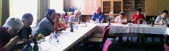 Nur gut, dass wir vor Beginn jeder Veranstaltung auch die Toiletten im Bürgerhaus kontrollieren. Die Tür war zu. Nach unserem Anruf im Rathaus brachte Ute schnell wie die Feuerwehr den Schlüssel. Prima! Der Kaffee zu Christel und Martinas leckeren Kuchen löste nämlich wie immer bei manchem Gast ein gewisses Bedürfnis aus. Nun konnte sich jeder uneingeschränkt auf Almuts Ausführungen konzentrieren.
