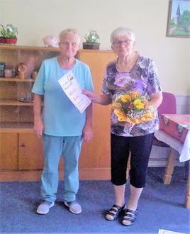 Ursel ist seit 20 Jahren Mitglied. Da sie noch erkrankt ist erhielt sie ihre Urkunde und den Blumenstrauß anschließend zu Hause. Auch Johanna konnte für 25-jährige Mitgliedschaft nur zu Hause geehrt werden. Ihr ist wegen der notwendigen Pflege ihres Mannes leider die Teilnahme am monatlichen Treff zur Zeit nicht möglich. Wir hoffen, dass unsere ehemalige Vorsitzende und sehr beliebte Freundin trotzdem bald wieder einmal zu uns kommen kann!