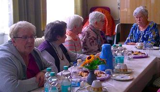 Unser Dieter Schubert war wegen Krankheit verhindert. So saß diesmal Bernhard Möhring als einziger Mann in der Runde. Seine Gisela half in der Küche spülen. Beide haben beschlossen zu ständigen Gästen zu werden. Sehr schön, nicht nur wegen dem Küchenhilfezuwachs! In unserer Runde ist jedes freundliche Menschenkind immer herzlich willkommen. Me muss nur jeden 2. Mittwoch zur Tür rei. Kaffee un salbesgebackena Kuchn gibt’s ümme, de Sitzplatz un de Spaß mitananne kost kenn Eintritt.