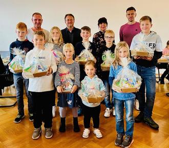 „Bauschutt“ - so lautete die richtige Lösung des diesjährigen Rätsels. Im großen Sitzungssaal des Landratsamtes Sonneberg würdigten Landrat Robert Sesselmann und das Team des Amts für Abfallwirtschaft die zehn jungen Preisträger, die mit ihren Angehörigen der Einladung zur Gewinnübergabe gefolgt waren.
