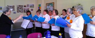 Mit Bravur übernahm danach Marlis das Dirigat über den Nachmittag und ihre muntere blumengeschmückte Truppe. Sie hatte wieder ein wunderbares Potpourri alter und neuer Lieder, Gedichte und Erzählungen zusammengestellt.