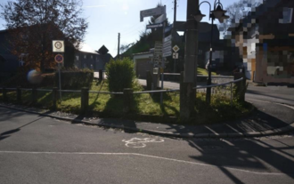 | Objektbeschreibung: Das Grundstück ist ein Eckgrundstück, mit einer annähernd dreieckigen Grundstücksform in leicht hängiger Lage. Es liegt im Zentrum des Ortes zwischen der Hofwiesenstraße und Freiherr-vom-Stein-Straße. Es handelt sich um eine Straßenbegleitfläche mit Verkehrszeichen, Wander- und Firmenwegweisern sowie Freileitungsmasten. Ansonsten ist das Grundstück unbebaut. | |