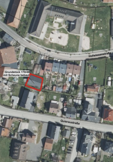| Art des Bewertungsobjekts: Nicht erschlossenes Grundstück, welches mit einer mehr als 100 Jahre alten Scheune bebaut ist. Das Bewertungsgrundstück hat keinen Zugang bzw. keine Zufahrt von öffentlichen Verkehrsflächen aus. Die Zuwegung ist über das Gemeindegrundstück Flst.Nr. 170/28 Gemarkung Mengersgereuth durch die Bestellung einer Grunddienstbarkeit zu regeln. | |