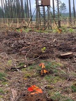 Diese Zäune dienen dem Schutz der wertvollen Laubbäume vor Wildverbiss: „Der Zaun ist aber die Ausnahme“, so Uwe Szpöt. Mit der Umstellung der Jagd 2004 auf die jährliche Vergabe einer Jagderlaubnis an einheimische Jäger, habe man die Wilddichte deutlich reduziert. „Jagd ist für unsere Leute Arbeit. Aber von jetzt etwa 25.000 im Herbst gepflanzten Bäumen bekommen nur etwa 6.000 einen Schutz. Und das sind die ganz seltenen Baumarten, mit denen wir gerade Versuche starten, wie Esskastanie, Libanonzeder, Haselnussbaum, und anderes.“ Obwohl die FBG für Zaunbau und Pflanzung Fördermittel hätte beantragen können, erfolgte dies nicht. Nach den Erfahrungen aus dem letzten Jahr ist der bürokratische Aufwand zu hoch und steht außer Verhältnis zu den finanziellen Vorteilen. „Das bezahlen die Waldbesitzer und die Mitgliedsgemeinden selbst. Da müssen wir uns auch nicht vorhalten lassen, wir profitieren vom Klimawandel und kassieren nur, wie es in einigen Medien verbreitet wird.“ so Uwe Szpöt. Es werden in den nächsten Wochen noch teambildende Maßnahmen mit Firmen und Aktionen stattfinden, um Bäume zu pflanzen. Insgesamt werden es damit in diesem Jahr auf der Fläche der FBG von 930 ha mehr als 52.000 Bäume. Dazu kommen mehrere Hektar mit Saat von Laubholz und Tannen.
