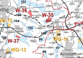 Im Entwurf des 2. sachlichen Teilplanes Windenergie werden im Gebiet der Gemeinde Drei Gleichen drei Vorranggebiete ausgewiesen.