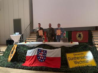 Am 28.03.2025 haben mich eine große Abordnung des Ortschaftsrates, Vertreter der Schützengesellschaft Wechmar und unser Bürgermeister Jens Leffler bei der Kommandoübertragung der 2. Kompanie begleitet. An diesem Tag bekam zum ersten Mal seit bestehen der Patenschaft eine Frau das Kommando. Unser Dank gilt dem scheidenden Kompaniechef Major Alexander Klas für sein Engagement für diese Patenschaft.