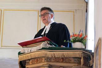Ein weiteres Kunstobjekt, was auf den Reformator hinweist, ist ein Ölgemälde, das sich neben der Kanzel befindet. Doch nicht allein die Ausstattung des Gebäudes war ausschlaggebend für die Wahl des Namenspatrons. Regionalbischof Tobias Schüfer erinnerte in seiner sehr lebendigen und ansprechenden Festpredigt an die Grundgedanken des Theologen.