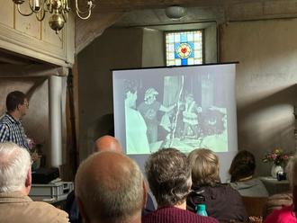 Die präsentierten Bilder stammen zum größten Teil aus der Hand von Herbert May, der seinerzeit das Dorfgeschehen in fotografischer Spitzenqualität festzuhalten wusste. Der unermüdlichen Arbeit seines Enkelsohns, Nico Lehmann, verdanken wir diesen beeindruckenden Abend! Er erklärte anhand von originalen Negativen und seiner technischen Ausstattung, wie er den riesigen Fundus seines Opas Stück für Stück entdeckt und wie wichtig ihm diese Arbeit sei - eine Herzensangelegenheit! Die historischen Filmstreifen mussten in akribischer Feinarbeit zuerst digitalisiert und bearbeitet werden, bevor sie zum Heimatabend der Öffentlichkeit zugänglich gemacht werden konnten.