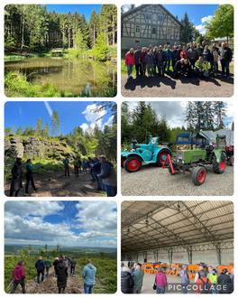 Am Samstag, den 17.05.2025 fand die Befahrung bzw. Begehung des Seeberger und Wechmarer Waldes statt. Hierzu wurden alle Mitglieder des Gemeinderates und der Ortschaftsräte eingeladen. Des Weiteren nahmen die Amtsleiter der Gemeindeverwaltung sowie die Schriftführerin aus den Gremiensitzungen an dieser Exkursion teil. Mit Lanz und Traktor sind wir an der Kegelbahn im OT Wechmar gestartet. Unseren ersten Halt machten wir am Georgenthaler Teiler, an welchem der OS-Bürgermeister, Herr Gieße erste Geschichten, Daten und Fakten zum Seeberger Wald preisgab. Gleichzeitig konnte ein Blick auf die Weihnachtsbaumplantage unserer Gemeinde Drei Gleichen geworfen werden. Anschließend folgten ein Halt am „Seeberger Teich“ sowie der „Seeberger Hütte“, an denen Herr Gieße weitere Daten und Fakten bereithielt und seine Ausführungen zu den geschichtlichen Hintergründen des Seeberger Waldes fortführte. Danach empfingen uns der Förster, Herr Hopf und der Vorsitzende der Forstbetriebsgemeinschaft „Totenkopf-Vitzerod“, Herr Szpöt im Wechmarer Wald. Zuerst zeigten sie uns die, durch den Deutschen Alpenverein beabsichtigten Kletterfelsen und wiesen auf deren Gefahren und Auswirkungen hin. Im Anschluss schauten wir uns das Steigerhaus und den Platz bzw. die bereits geschotterte Freifläche, auf der die Fortsbetriebsgemeinschaft „Totenkopf-Vitzerod“ ein Schleppdach errichten möchte an. Herr Szpöt gab uns einen kurzen Einblick in den Planungsstand dieses Projektes. Der Förster, Herr Hopf hat außerdem auf die Problematik des Borkenkäfers hingewiesen und uns an einer Borkenkäferfalle dessen Funktionsweise erklärt. Herr Hopf und Herr Spzöt informierten uns anschließend gemeinsam über die verschiedenen Baumarten des Wechmarer Waldes. Danach fuhren wir zu einem tollen Aussichtspunkt, an welchem man erkennen konnte, über welche beachtliche Fläche sich der Wechmarer Wald erstreckt. Bei einem gemeinsamen Mittagsimbiss in der „Wechmarer Hütte“ wurden letzte Fragen von Herrn Hopf und Herrn Szpöt beantwortet und der Exkurs in die Kommunalwälder der Gemeinde Drei Gleichen fand seinen Abschluss. Gut gestärkt fuhren wir anschließend noch zur Besichtigung des ehemaligen Armeegeländes auf den Seeberg. Bauhofleiter, Herr Schröter stellte uns dort die vorhandenen und durch den Bauhof genutzten Lagerflächen vor. Mit viel neuem Wissen im Gepäck ließen wir den Nachmittag bei guten Gesprächen, Kaffee und Kuchen auf der Kegelbahn im OT Wechmar ausklingen.