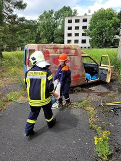Die Floriansjünger besetzten alle Fahrzeuge und fuhren gemeinsam mit dem Rüstwagen der Feuerwehr Wechmar die gemeldete Adresse an. Vor Ort wurde ein Pkw mit zwei verletzten Personen vorgefunden, welche mittels Brechwerkzeug aus dem Fahrzeug befreit wurden. Diese wurde an die Jugendretter übergeben, welche sich professionell um die Versorgung der Wunden kümmerten.