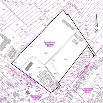 Der Geltungsbereich umfasst in der Flur 1 der Gemarkung Wechmar die Flurstücke 13/1 und 16/2 sowie in der Flur 3 der Gemarkung Wechmar die Flurstücke 205/1, 205/2, 206, 207/1, 207/2, 208/2 sowie Teilflächen der Flurstücke 208/6, 210/14, 210/20 und eine Teilfläche des Flurstücks 212.