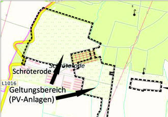 | • | im Süden: Putenzucht Schröterode (Gebäude mit Putenhaltung, ein Mehrfamilienhaus); |