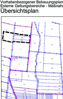Der Geltungsbereich des Bebauungsplanes sowie die externen Maßnahmenflächen (zum Schutz, zur Pflege und zur Entwicklung von Boden, Natur und Landschaft) sind in den abgebildeten Übersichtsplänen dargestellt.