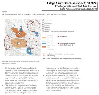 Nach Aufhebung und Abrechnung der alten Fördergebiete Damaschkestraße und Feldstraße sowie der Stadtumbaugebiete Gartenstraße, Wendewehr I und Wendewehr II bleiben im Mühlhäuser Stadtgebiet noch das Sanierungsgebiet „Altstadtsanierung Mühlhausen“ (seit 1991), die Stadtumbaugebiete Ballongasse (seit 2007) und Feldstraße (seit 2019) sowie das Fördergebiet „Grüner Korridor“ (seit 2019) erhalten. In diesen Gebieten sind aktuell wie auch künftig mehrere Maßnahmen geplant, um die Stadtentwicklungsziele entsprechend des aktuellen integrierten Stadtentwicklungskonzeptes (ISEK 2018) zu erreichen.