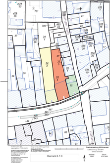 | • | Grundstück Gemarkung Mühlhausen Flur 44 Flurstück 33/4 mit einer Größe von 442 m² (Obermarkt 7). |
