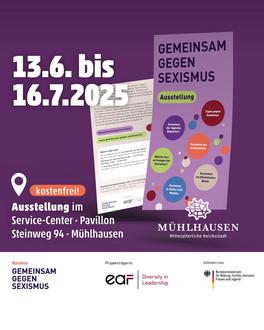 Ab dem 13. Juni 2025 zeigt die Stadt Mühlhausen im Service-Center am Oberen Steinweg (Pavillon) die Ausstellung „Gemeinsam gegen Sexismus“.