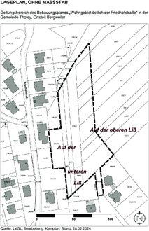 Der Gemeinderat der Gemeinde Tholey hat in seiner Sitzung am 21.03.2024 die Veröffentlichung des Bebauungsplanes „Wohngebiet östlich der Friedhofstraße“ im Internet bzw. eine Auslegung zur Beteiligung der Öffentlichkeit gem. § 3 Abs. 2 BauGB beschlossen.