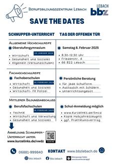 Gerne können Sie, die für die Anmeldung wichtige Angaben, auch online über www.kurzelinks.de/5mcd eingeben und die notwendigen Nachweise (Kopie Halbjahreszeugnis, Praktikumsvertrag etc.) zu einem späteren Zeitpunkt im Sekretariat abgeben. Unter 06881-999840 werden auch telefonisch gerne Rückfragen beantwortet. www.bbzlebach.de