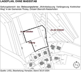 Jedermann kann den Bebauungsplan „Wohnbebauung Verlängerung Krettnicher Weg”, bestehend aus Plan und Begründung, im Rathaus der Gemeinde Tholey, Besprechungszimmer des Fachbereichs Bauen, Wohnen, Umwelt, während der allgemeinen Dienststunden einsehen und über dessen Inhalt Auskunft verlangen.