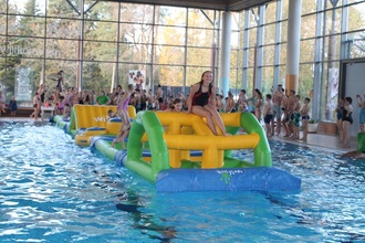 Die Animationsprofis von Poolevents aus der Nähe von Hamburg haben sich auf Bäderevents spezialisiert und schon bei weit über 1.100 Wasserpartys in ganz Deutschland die Schwimmbäder zum Überkochen gebracht. Bei der Fun&Action POOL-PARTY stehen für die begeisterten Badegäste unzählige Attraktionen für die unterschiedlichsten Altersgruppen während des Eventtages auf dem Programm. Ununterbrochen finden im Schwimmbad Aktionen statt: Im Wasser befinden sich innovative Großwasserspielgeräte, an Land gibt es verschiedene Spiele sowie zahlreiche Aktionen mit unserem gutgelaunten Animationsteam. Besondere Publikumsmagnete und Highlights dieses fröhlichen Events sind die gigantischen Wasserspielgeräte wie der Wibit AquaTrack – Auf die Plätze, fertig… Spaß! Der AquaTrack ist ein 24m langes schwimmendes Hindernisrennen. Klettern, krabbeln, springen, hangeln. Auf dem AquaTrack wird den jungen Besuchern alles abverlangt. Außerdem: Freeclimbing „ROCK SLIDER“ Kletterberg, Wasserlaufmatte, Bananenwippe u.v.m. „Spannung total“ heißt es bei vielen lustigen Spielen im und am Wasser wie z.B. dem „Twistertanz“ oder beim „Bodypainting“. Fester Bestandteil des Programms ist auch ein „Geschlechterkampf“, bei dem Mädchen und Jungen in mehreren Spielen gegeneinander antreten und um möglichst viele Punkte kämpfen.