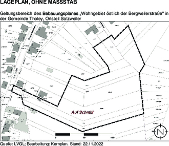 Im Ortsteil Sotzweiler in der Gemeinde Tholey soll östlich der Bergweilerstraße neuer Wohnraum auf einer bislang unbebauten Grün- bzw. Freifläche mit vereinzeltem Gehölzbestand geschaffen werden. Die Erschließung des Plangebietes erfolgt über eine Verbindungsstraße zwischen Bergweilerstraße und Bächelweg und ist auf diese Weise gesichert. Die erforderlichen Stellplätze können vollständig innerhalb des Geltungsbereiches organisiert werden.